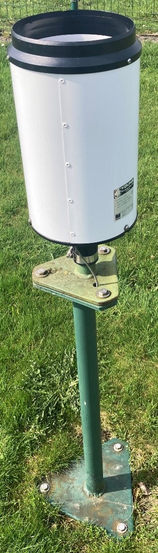 Ce pluviomètre est changé et calibré tous les six mois pour s'assurer qu'il n'y ait pas de bouchage ou d'écart de mesure. |