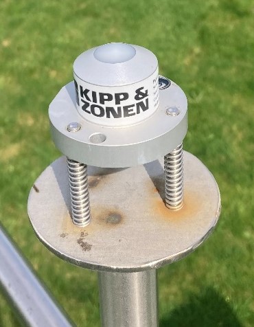 Pour la mesure du rayonnement solaire, le capteur utilisé est un pyranomètre, modèle SP Lite2 du fabricant Kipp & Zonen. (https://www.kippzonen.com/Product/9/SP-Lite2-Pyranometer) L'appareil est équipé d'un détecteur (photodiode silicium) qui reçoit l'énergie solaire de l'ensemble de l'hémisphère. Il y a ensuite production d'une faible tension qui sera convertie en rayonnement (W/m²). La maintenance du pyranomètre est effectuée tous les deux ans chez le fabricant. La sonde n'est pas recalibrée mais un coefficient de correction est communiqué pour corriger la dérive de la sonde. |